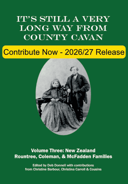 It will also provide more social and historic context that shaped our ancestors’ lives, both in County Cavan, and in Christchurch, New Zealand, plus our genealogical records have been updated and expanded from Volume 2.
